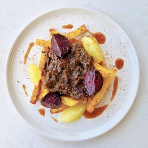 Gehaktbal I gepofte tomaatjes I appel I walnoot I kappertjes