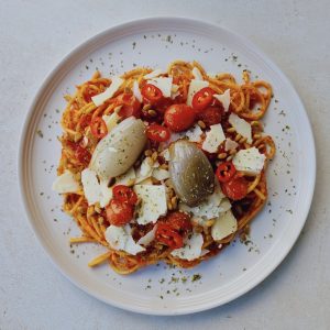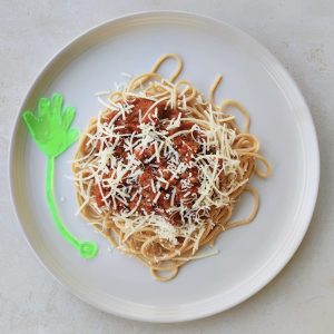 Volkoren pasta I rundergehakt I tomatensaus I bleekselderij I wortel I ui